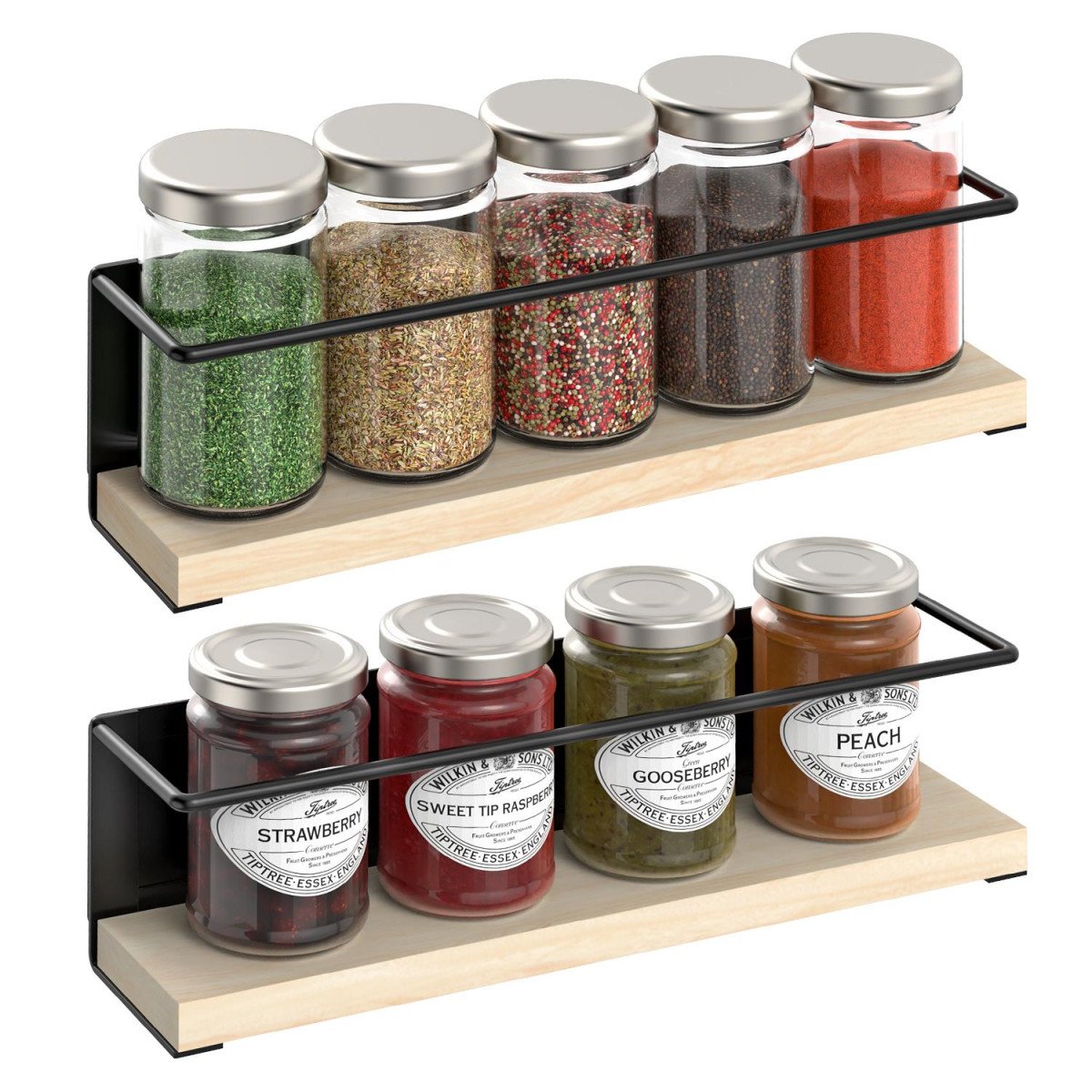 Magnetic Spice Rack 2pc Natural Wood 30x10cm Strong Magnetic Kitchen Shelf Wall
