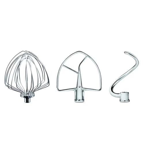 KitchenAid 5KSM7BL3PSS Stainless Steel Accessory Set (3-Piece) for Large 5.6L, 6.6L & 6.9L Bowl-Lift Stand Mixers, Includes Flat Beater, Dough Hook, and Wire Whisk, Dishwasher Safe