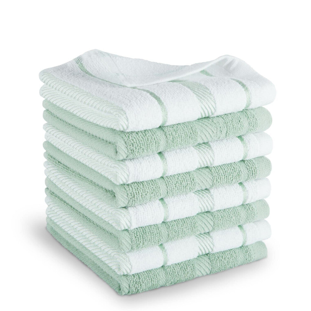KitchenAid Albany Dishcloth 8 Pack Set Pistachio/White 12""""x12""""