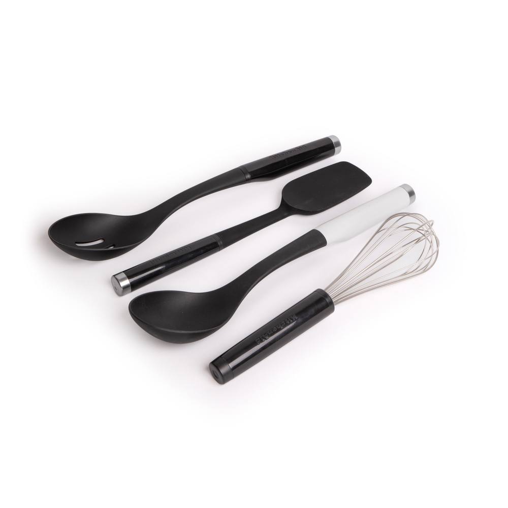 KitchenAid 4pc Onyx Black Kitchen Utensil Set with Spoon Spatula, Slotted Spoon, Whisk and Basting Spoon | Size: Large