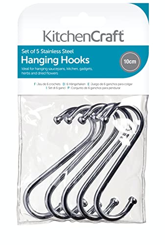 KitchenCraft Medium Chrome-Plated Metal Hanging 'S' Hooks, 1 cm (Bag of 5)