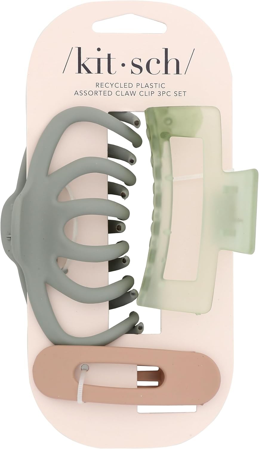 Kitsch Large Assorted Hair Clips for Women, Medium Open Shape Claw Sage