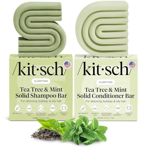 Kitsch Tea Tree Shampoo & Conditioner Set – Anti Dandruff Shampoo Bar & Conditioner Bar - Hair Care for All Hair Types - Free of Paraben, Sulfate & Silicone - 2 pcs