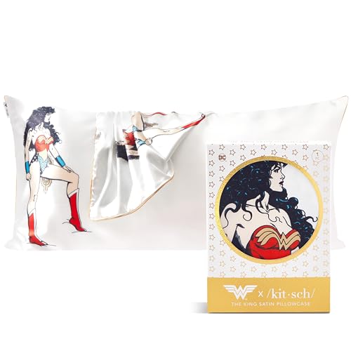 Kitsch x Wonder Woman Satin Pillowcase with Zipper for Hair, Softer Than Silk Pillow Cases King, Cooling Pillow Covers, Machine Washable Wrinkle-Free, Satin Pillow Cases King 19x36, Believe in Wonder