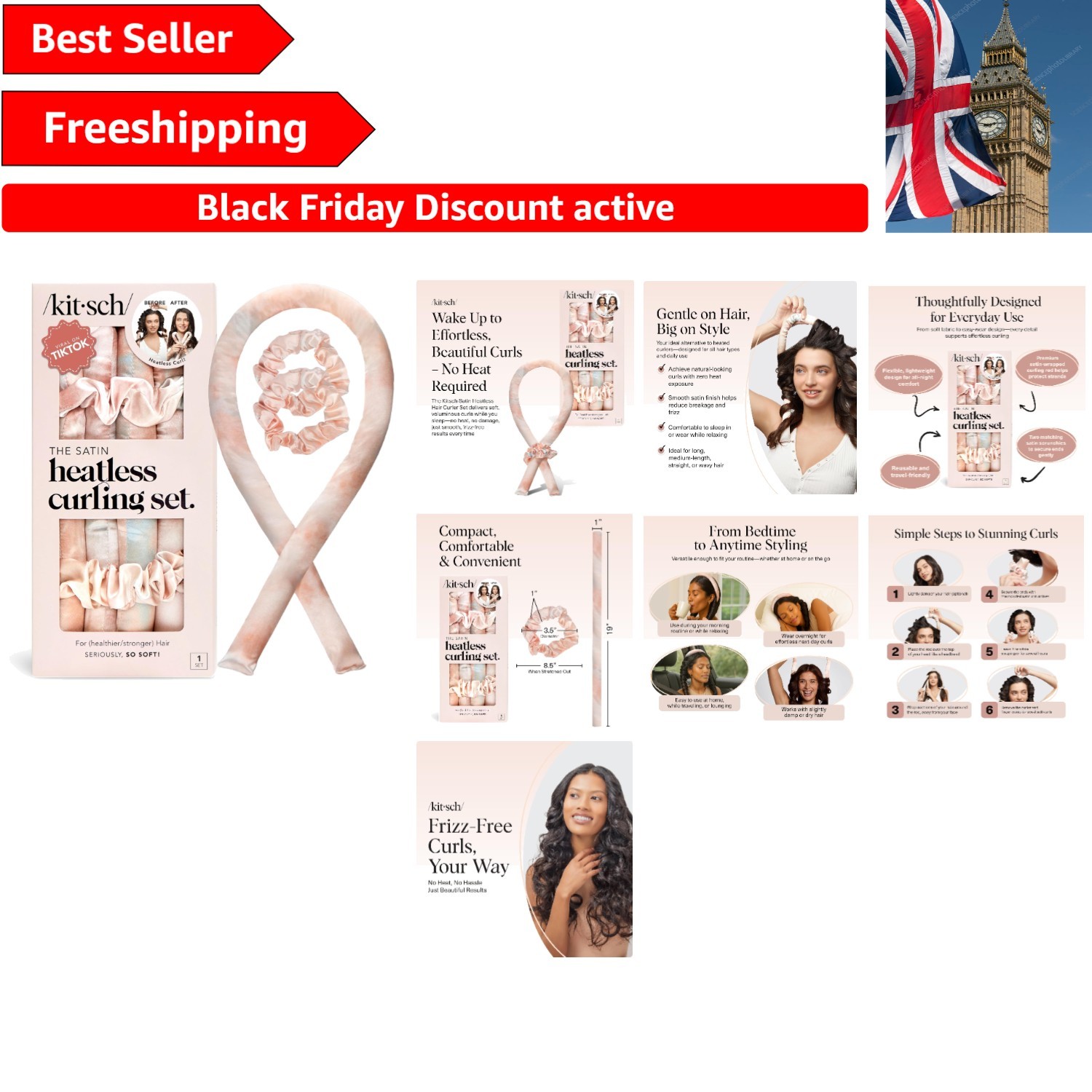 Kitsch Heatless Curling Set – Satin Rollers for Overnight Curls, No Heat Hair Cu