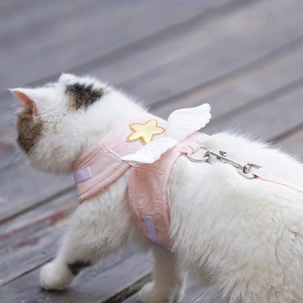 Cat Harness Leash Adjustable 4 Season Universal Cute Angel Wings Cat Vest Harness with 1.5m Traction Rope for Kitten Light Pink XL (2.5â4kg