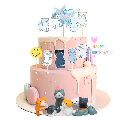 15Pcs Cat Cake Decorations - Cat Cake Topper, Realistic Cat Figures, Cat Gifts, Mini Cat Toys Kitten Accessories, Realistic Kitten Birthday Decorations