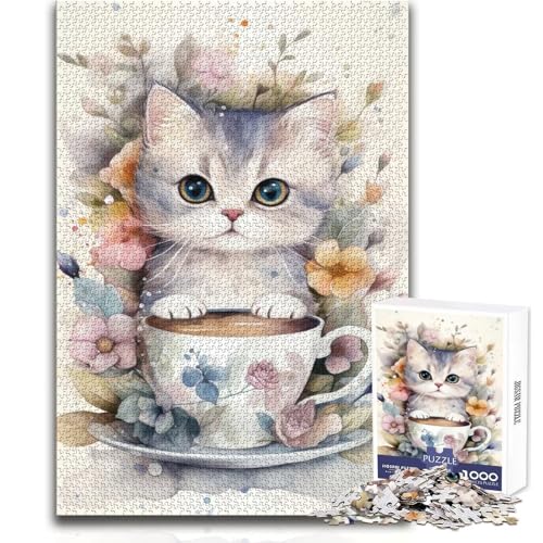 Puzzles for Teenagers 1000 Piece Adorable Coffee Kitten Challenging Game Toys Family Activities Educational Toy Size 50x75cm