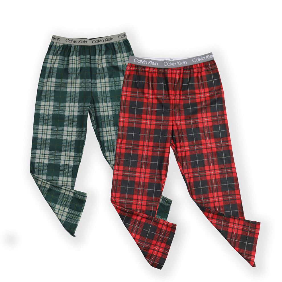 Calvin Klein Kids Boys' Super Soft Brushed Micro Pajama Pant 2-Pack, Green Plaid/Red Plaid, X-Large