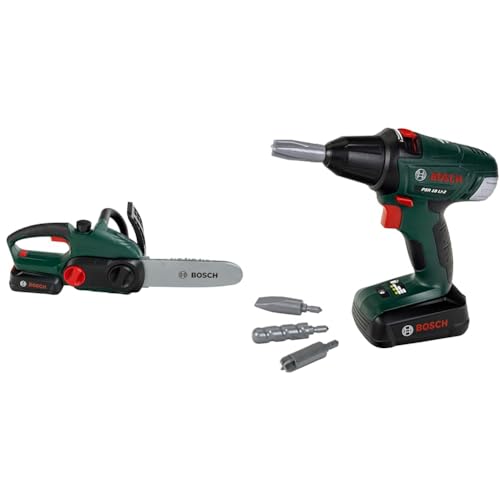 Theo Klein 8399 Bosch Chain Saw I Authentic Replica of the Original I Battery - Powered Saw with Light and Sound Effects I for Kids Aged 3 Years+ & 8567 Bosch Cordless Screwdriver I for Kids Aged 3+