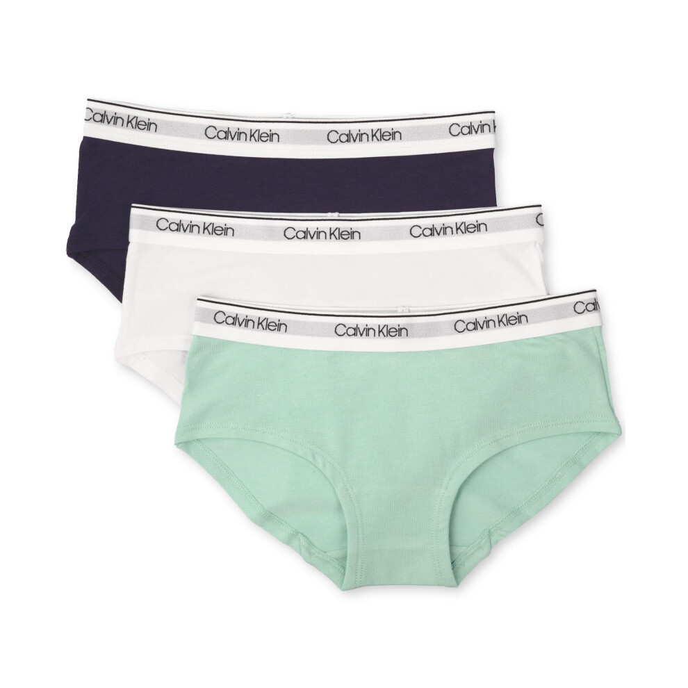 Calvin Klein Kids Girls' Modern Cotton Hipster Underwear 3-Pack, Teal/Classic White/Symphony Blue, Large