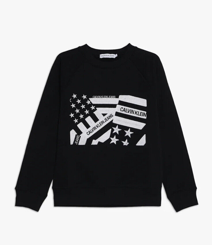 Kids Boys Calvin Klein Embroidered Flag Sweatshirt Crew Neck Jumper Size Age 10