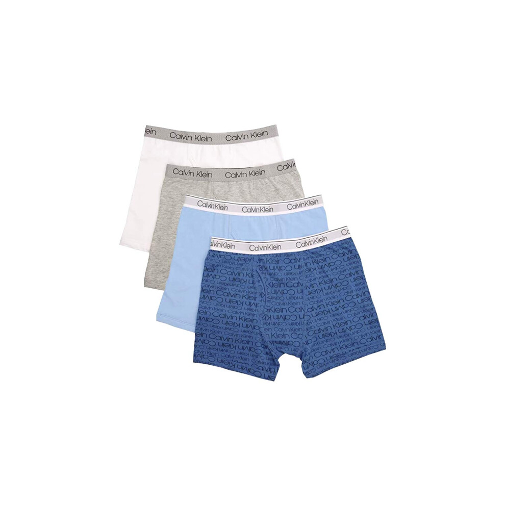 Calvin Klein Kids Boys' Modern Cotton Boxer Brief Underwear 4-Pack, Blue/Grey/White, Medium