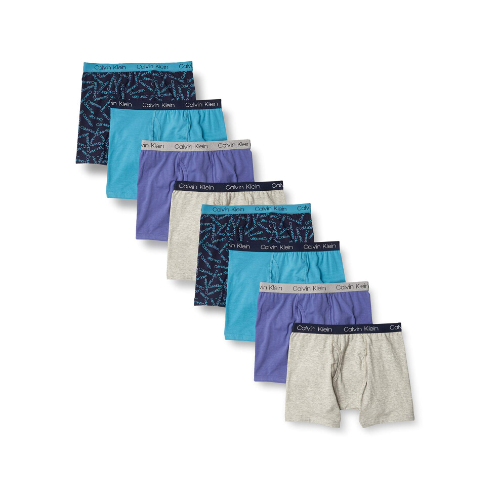 Calvin Klein Kids Boys' Modern Cotton Boxer Brief Underwear 8-Pack, Blue Print, X-Large