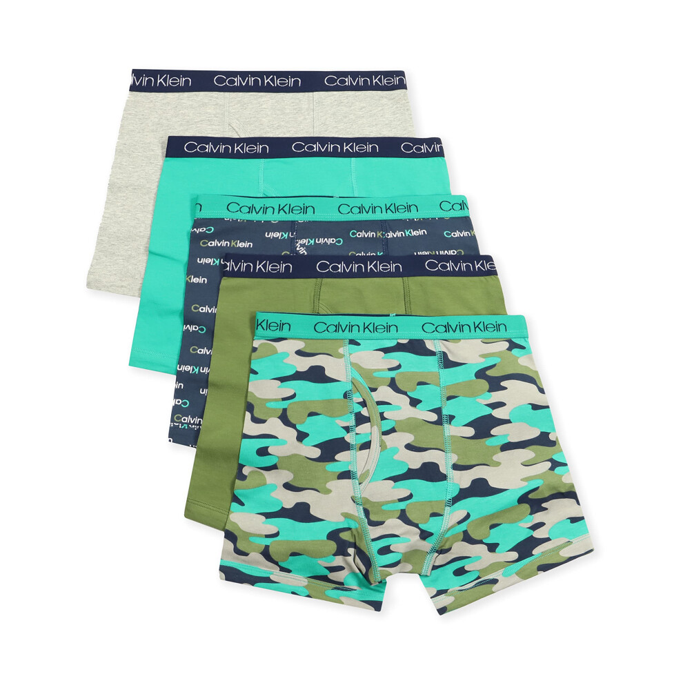Calvin Klein Kids Boys' Modern Cotton Boxer Brief Underwear 5-Pack, Heather Grey/Camo/Navy/Green/Olive, Medium