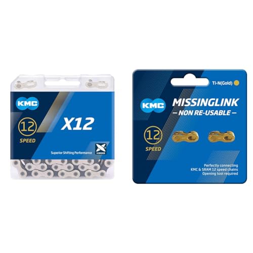 KMC X12 12 Speed Chain, Silver/Black, 126 Links & Unisex Adult Missing Links 12NR Gold Missing Links 12nr - Gold.