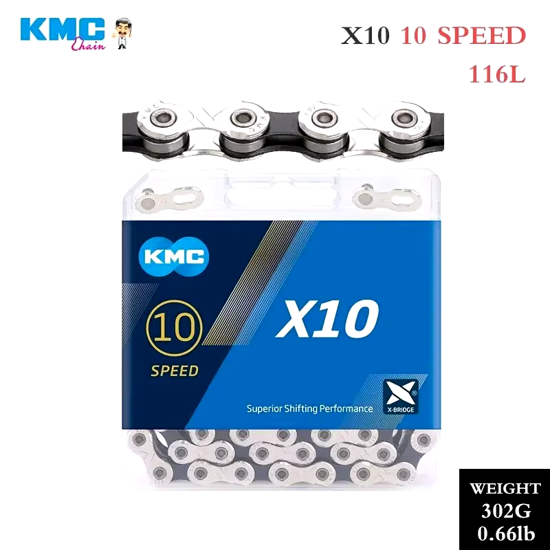 KMC DLC X10-SL 10 Speed Chain Black 116 Link - Road Bike/Mountain Bike