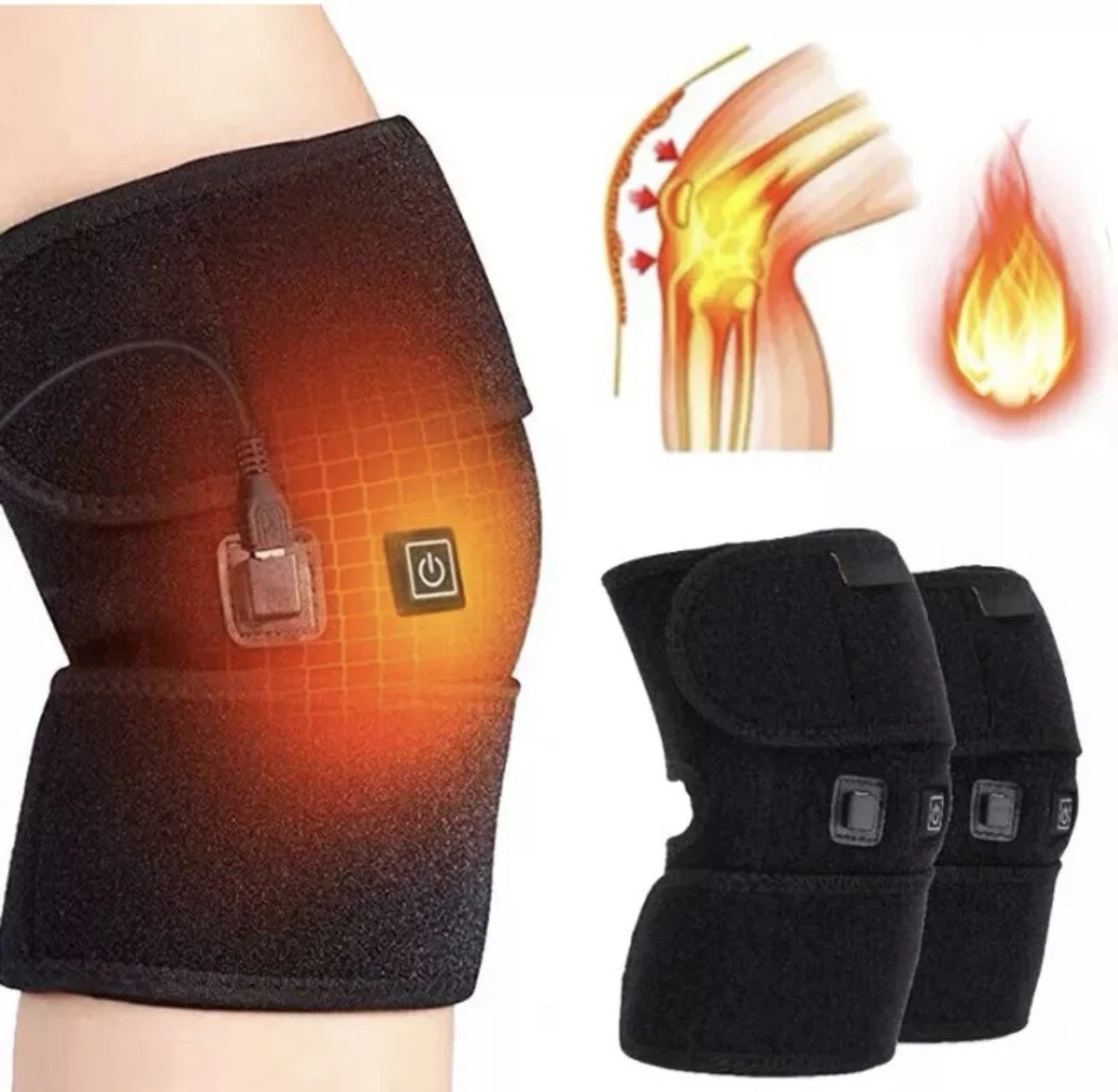 2pcsElectric Knee Heating Pad USB Heated Knee Brace Support for Arthritis Joint