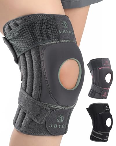 ABYON ELITE Knee Support for Men & Women with 4-way Adjustable Non-Slip Strap System and Side Stabilizers Knee Brace for Knee Pain Support,Arthritis, ACL, Meniscus Tear, Runners Knee, Walking