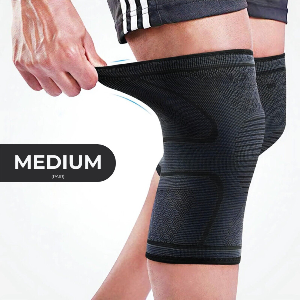 (Grey - Medium) 2x Knee Support Compression Arthritis Pain Relief Patella Gym