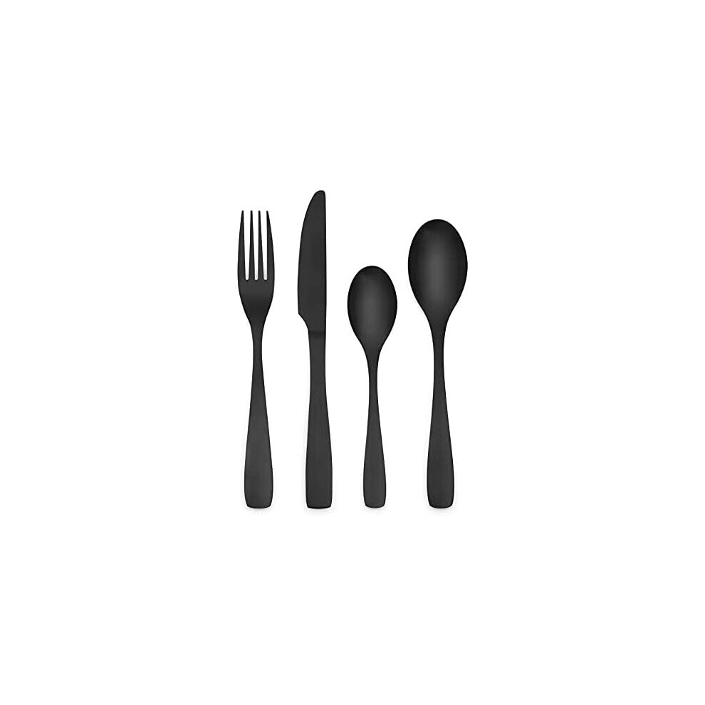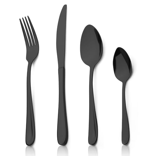 (16pcs Black) Cutlery Sets with Spoon Knife and Fork Stainless Steel Set Ideal for Home Party Christmas Dining Dishwasher Safe