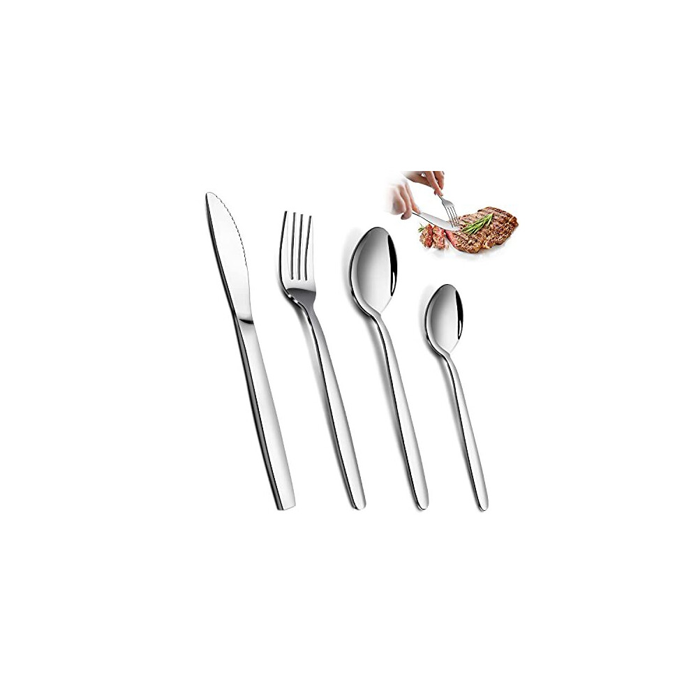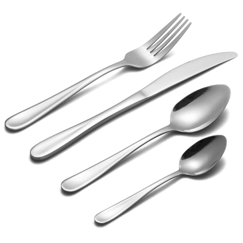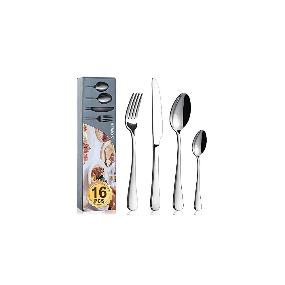 Cutlery Set, BEWOS 16 Piece Stainless Steel Flatware Set, Tableware Silverware Set with Spoon Knife and Fork Set, Service for 4, Dishwasher Safe/Easy Clean, Mirror Polished
