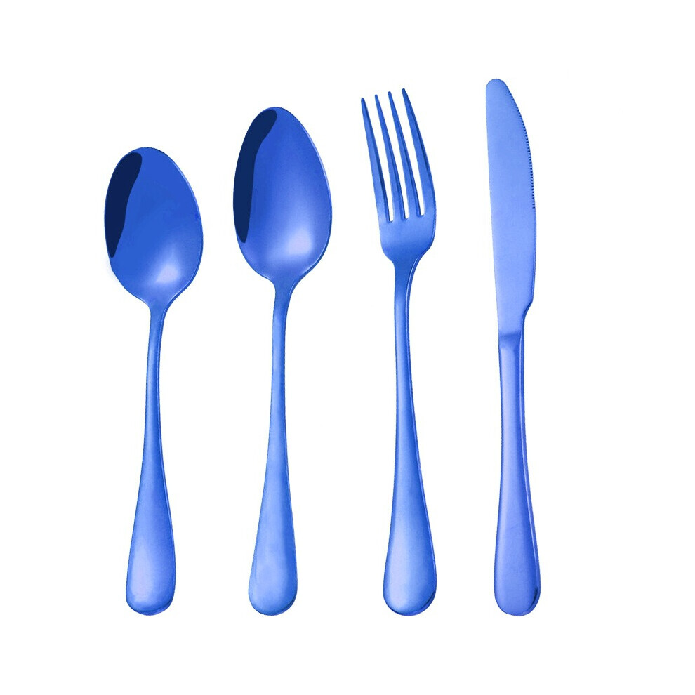 (16pcs Blue) Cutlery Sets with Spoon Knife and Fork Stainless Steel Set Ideal for Home Party Christmas Dining Dishwasher Safe