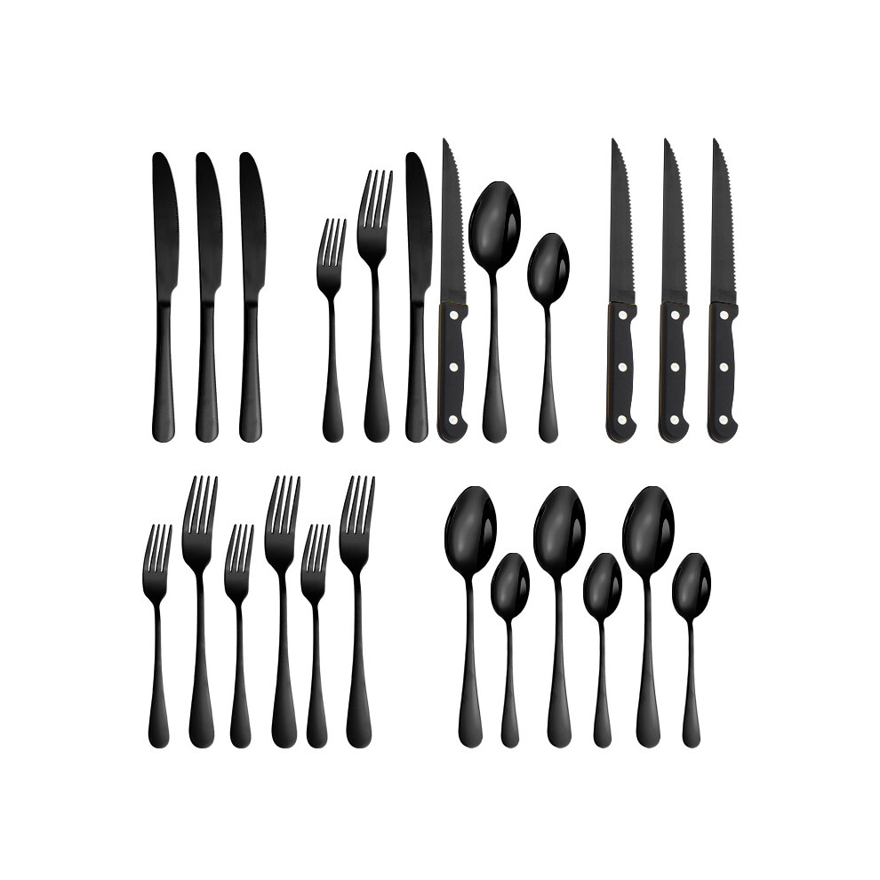 (Black 24-piece set) Steak Knife and Fork Set, 24 Piece Stainless Steel Dinner Knife Set