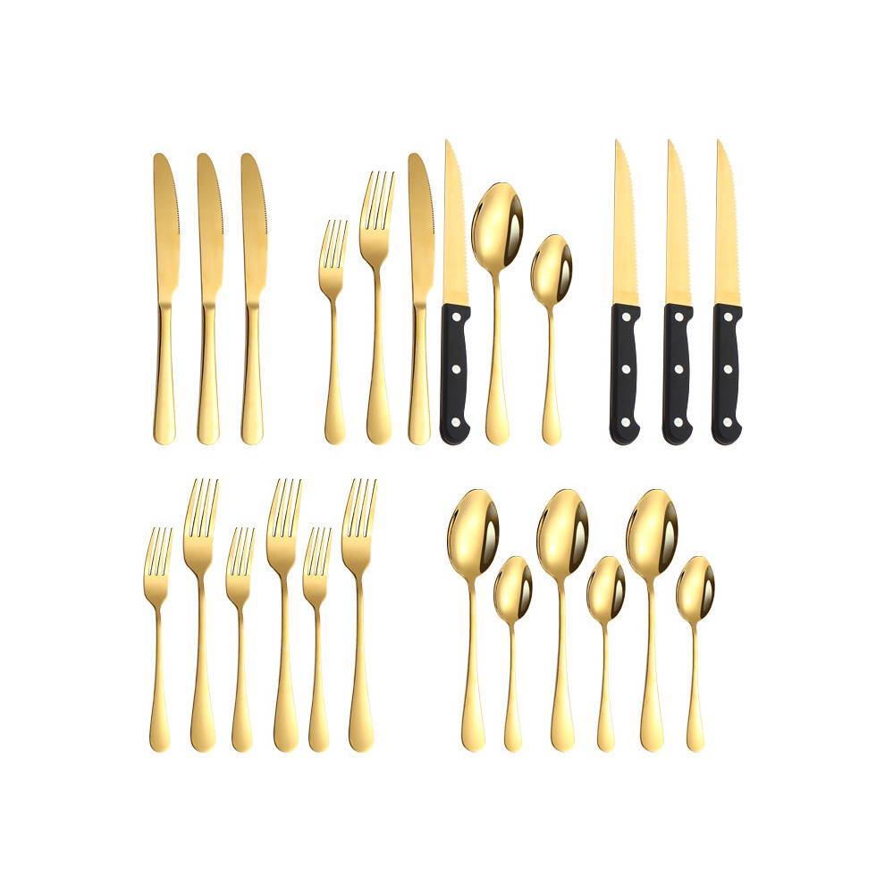 (Gold 24-piece set) Steak Knife and Fork Set, 24 Piece Stainless Steel Dinner Knife Set