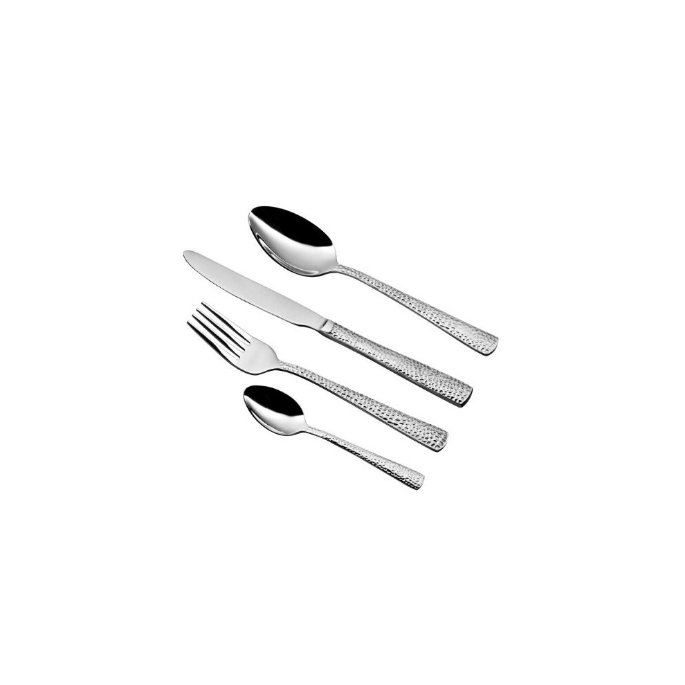Premier Housewares 922310 Cutlery Sets Hammered Design Knife And Fork Set Knives And Forks Set Spoons Cutlery 24 Pieces, Silver, H9 x W26 x D36cm