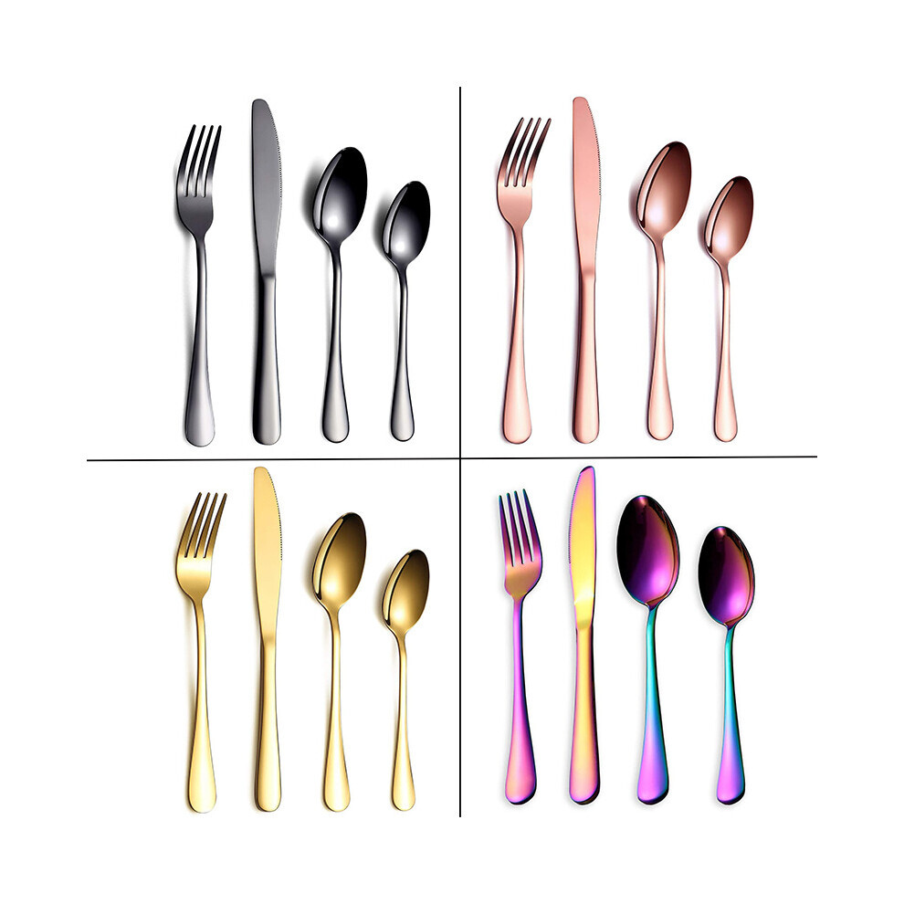 (16pcs in 4 color) Cutlery Sets with Spoon Knife and Fork Stainless Steel Set Ideal for Home Party Christmas Dining Dishwasher Safe