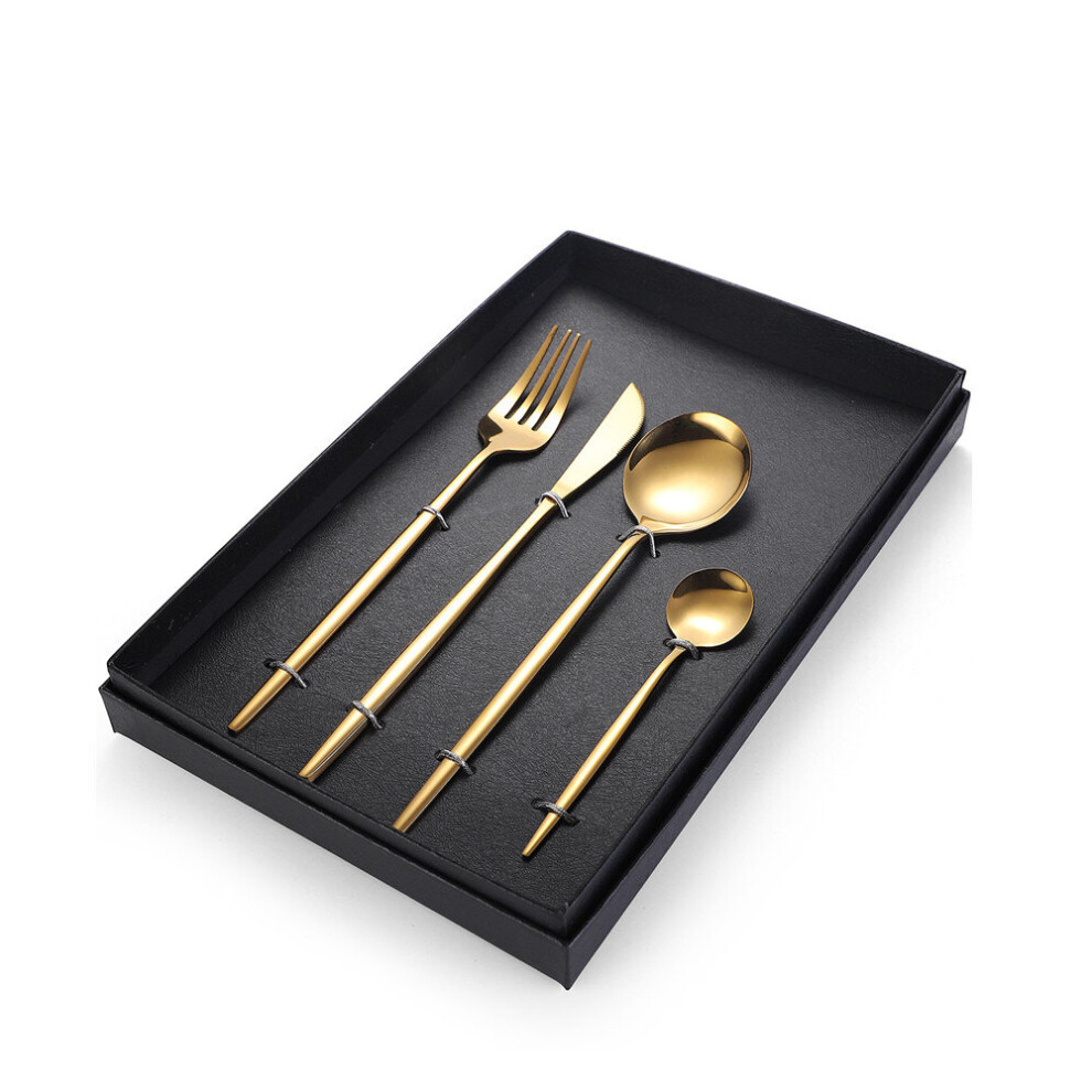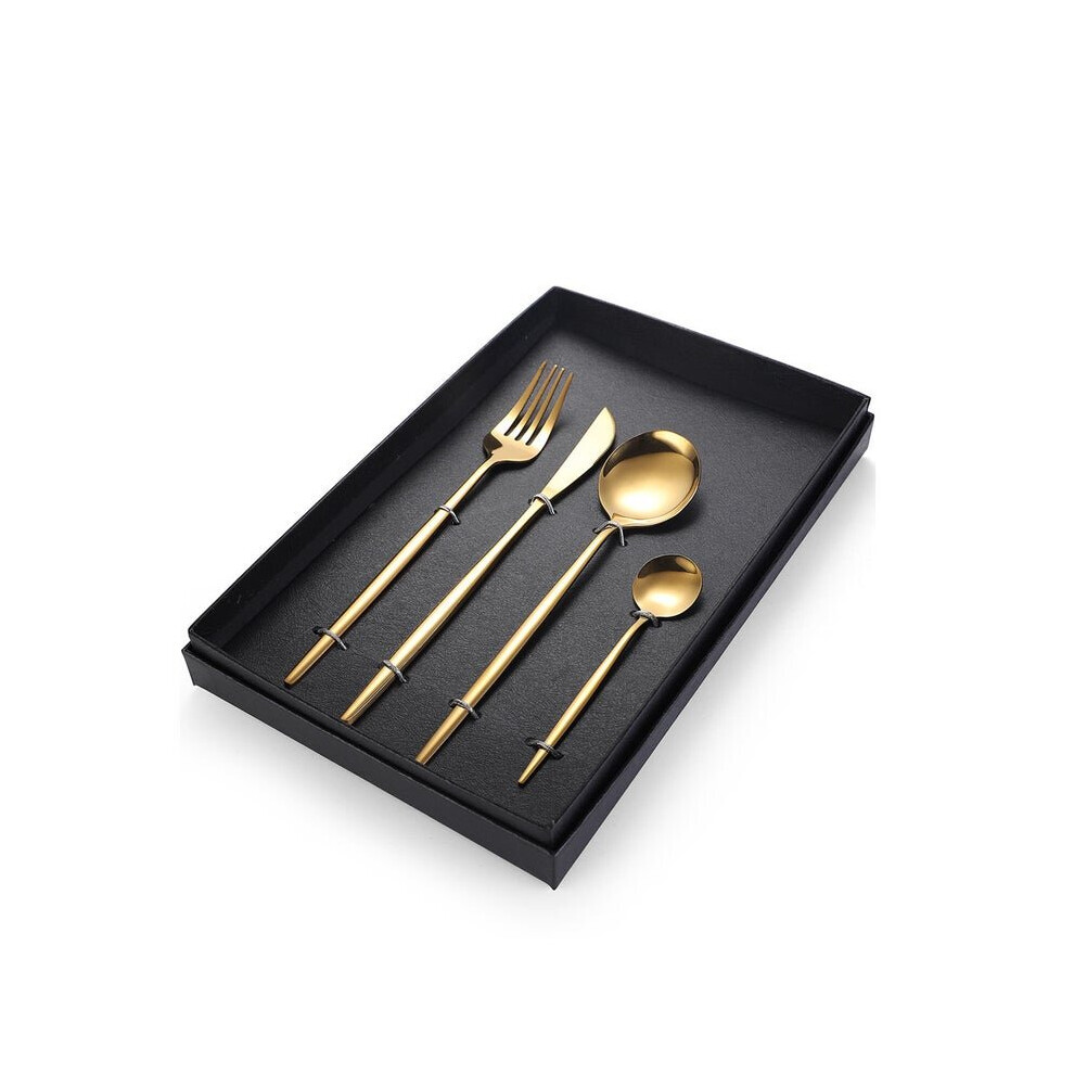 304 Stainless Steel Tableware Cutlery Set 4Pcs Gold Knife And Fork Spoon Set Gold Dinnerware Dinner Set Holiday Gift Box
