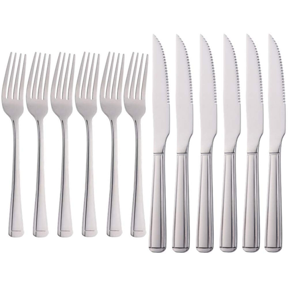 Meisha Harley Pattern Steak Knife and Fork Set, Silver Table Knife Set, 6 Steak Knives & 6 Dinner Forks, Stainless Steel