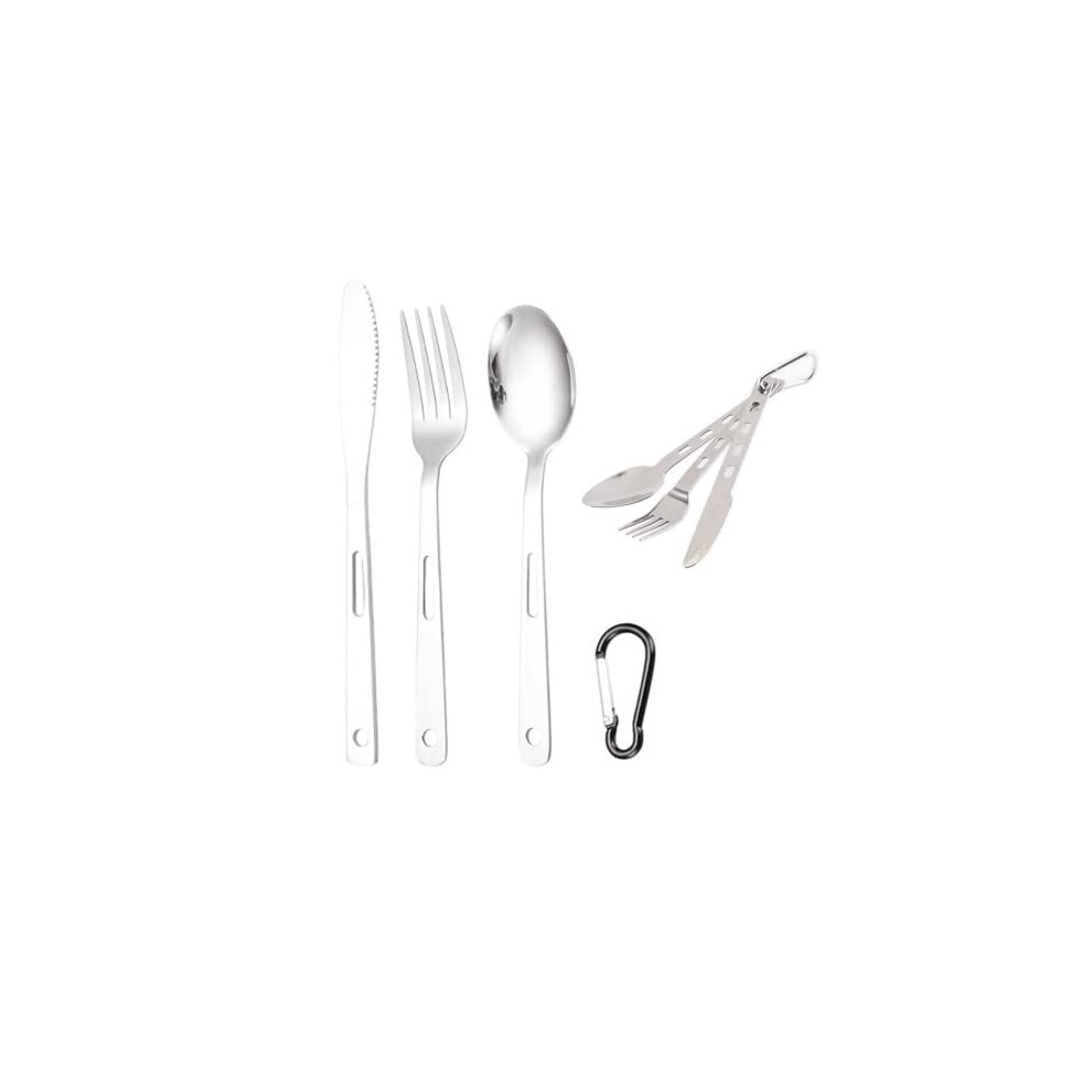 Fuyamp 3Pcs Camping Cutlery Set with Portable Pouch Case, Stainless Steel Flatware Camping Utensils Set for Knife, Fork and Spoon Set with Carabiner for Travel Hiking Picnic Office School