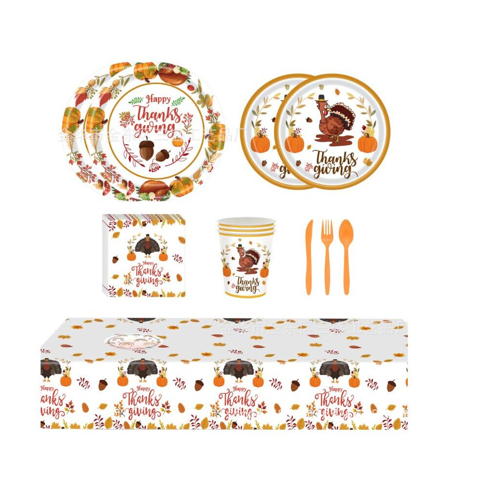 97 Pcs Thanksgiving Party Decoration Cutlery Tableware Set Tablecloth/Napkins/Cups/Paper Plates/knife, fork and spoon Set Party Supplies