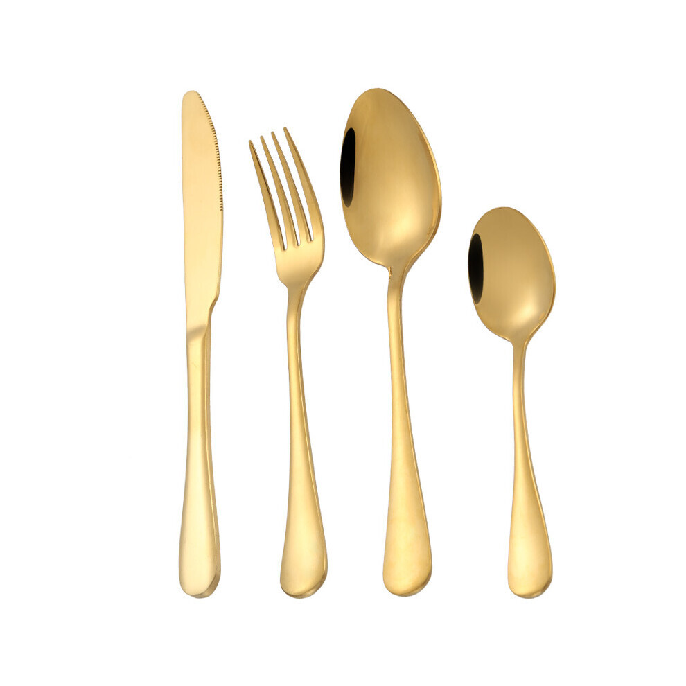(16pcs Gold) Cutlery Sets with Spoon Knife and Fork Stainless Steel Set Ideal for Home Party Christmas Dining Dishwasher Safe