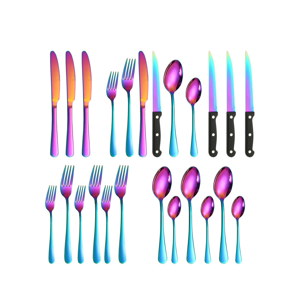 (Colorful 24-piece set) Steak Knife and Fork Set, 24 Piece Stainless Steel Dinner Knife Set