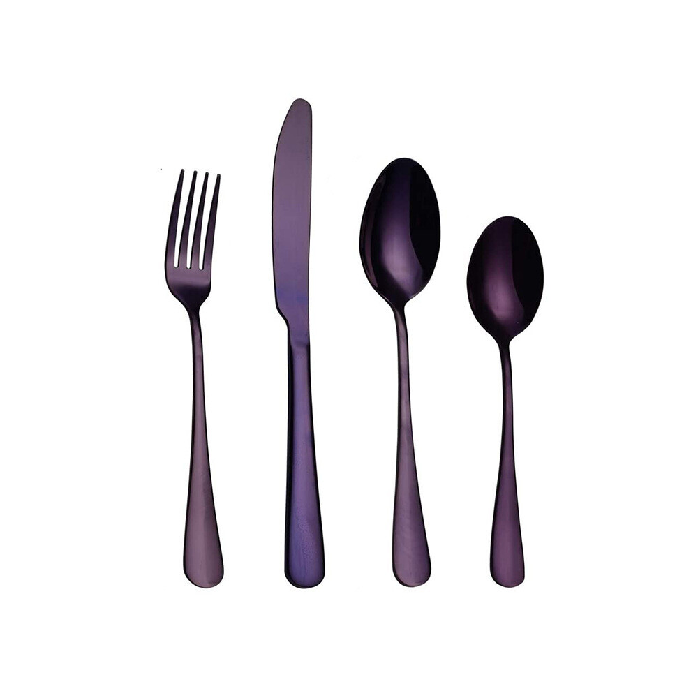 (16pcs Purple) Cutlery Sets with Spoon Knife and Fork Stainless Steel Set Ideal for Home Party Christmas Dining Dishwasher Safe