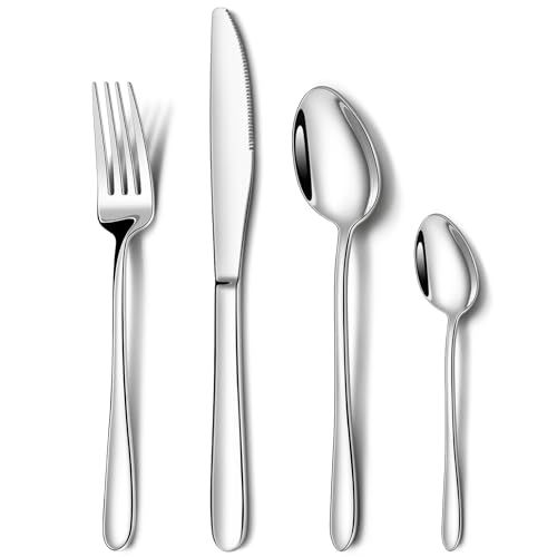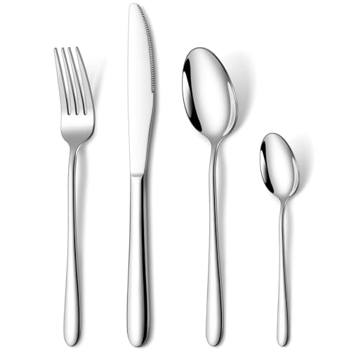 Cutlery Set, NINIROR 16 Piece Stainless Steel Flatware Set Silverware Set for 4 People Include Spoon Knife and Fork Sets Mirror Polished Dishwasher Safe Modern Design for Home, Restaurant, Wedding