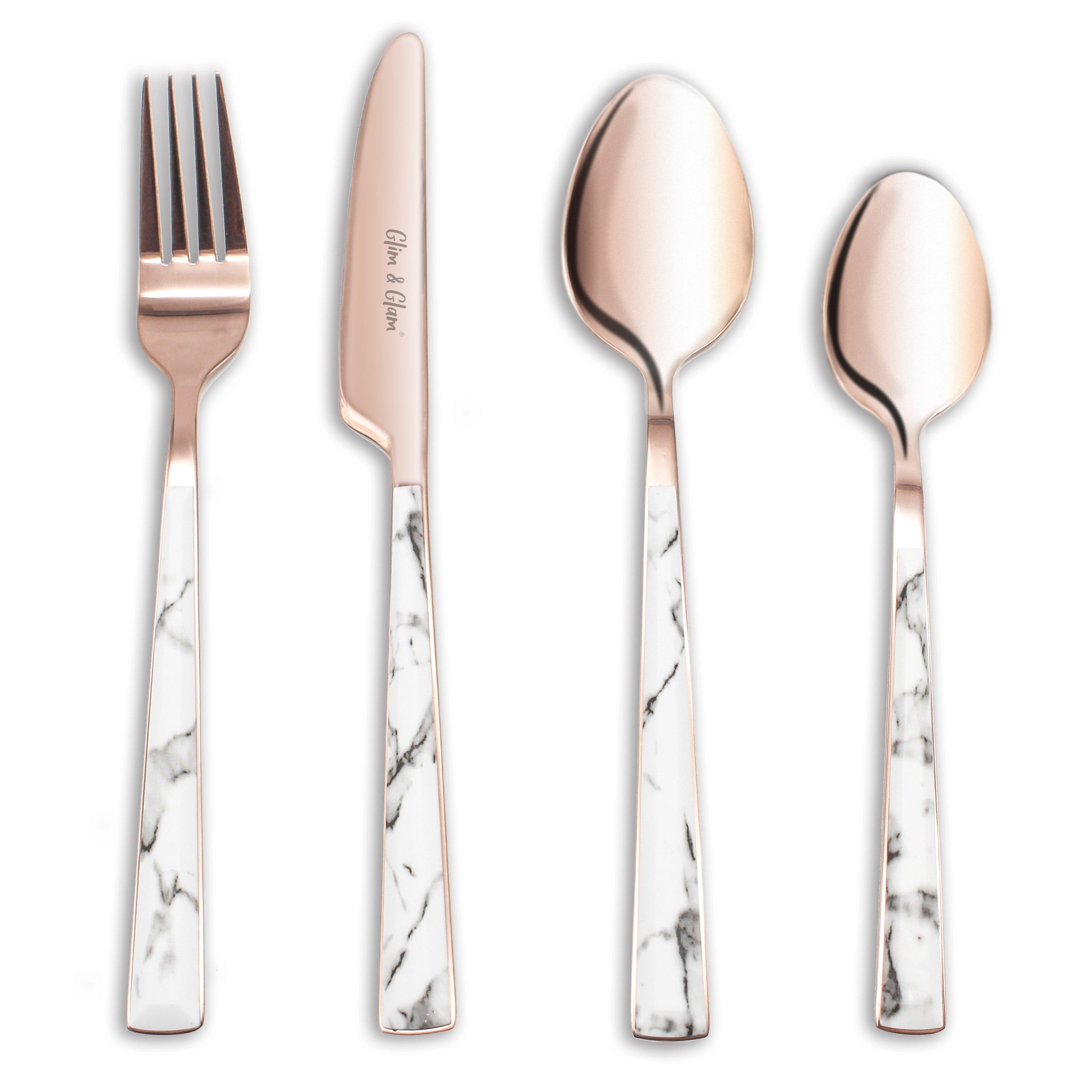 Cutlery Sets 16 Piece Set Knife Fork Spoon Marble Decal Handle