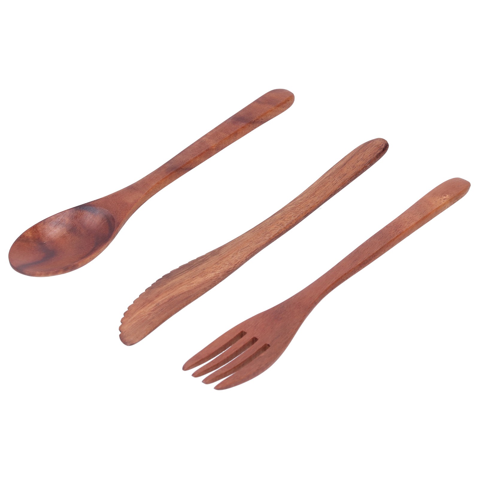 3PCS Wooden Tableware Sets Fork Knife Spoon Cutlery Kitchen Dinnerware