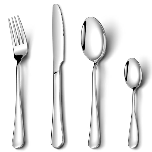 Bestdin Cutlery Set - 16 Piece Cutlery Set for 4 People, Stainless Steel Tableware Silverware Set with Spoon Knife and Fork Sets, Ideal for Home/Party/Restaurant, Mirror-Polished & Dishwasher-Safe