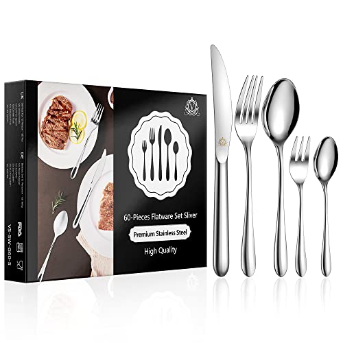 vancasso Cutlery Set for 12 People, 18/10 Stainless Steel Knife and Fork Sets, 60 Piece Flatware Set,Tableware Silverware with Knife/Dinner Spoon/Tea Spoon/Dessert Fork, Dishwasher Safe