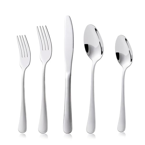 KitchenBoss Cutlery Set for 4 People: Knife and Fork Sets 20 Pieces, Stainless Steel Cutlery Set, Flatware Set, Dishwasher Safe, Mirror Polished, Silver