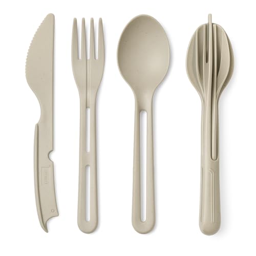 Koziol Klikk 2.0 Reusable Cutlery Set by CKB LTD – 12 Piece, Set of 4 Portable Knife, Fork & Spoon Sets – Compact Interlocking Travel Flatware – Dishwasher Safe Eco-Friendly Plastic (Desert Sand)