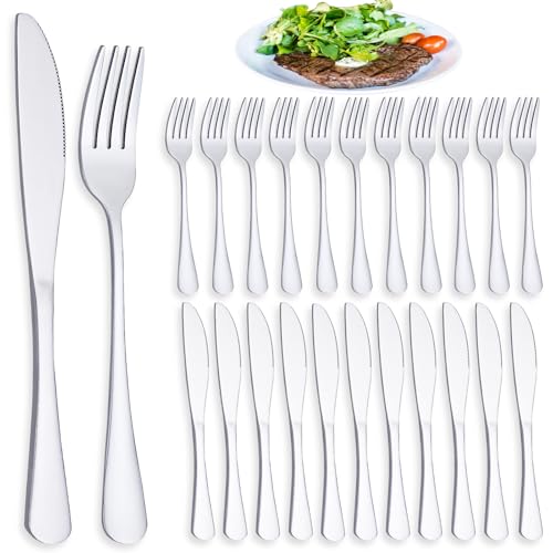 PionStar 24 Pieces Knife and Fork Sets, Premium Stainless Steel Cutlery Set for 12 People, Forks Set of 12 & Knives Set of 12, Dishwasher Safe/Mirror Polished, Silverware Set Include Knife and Fork