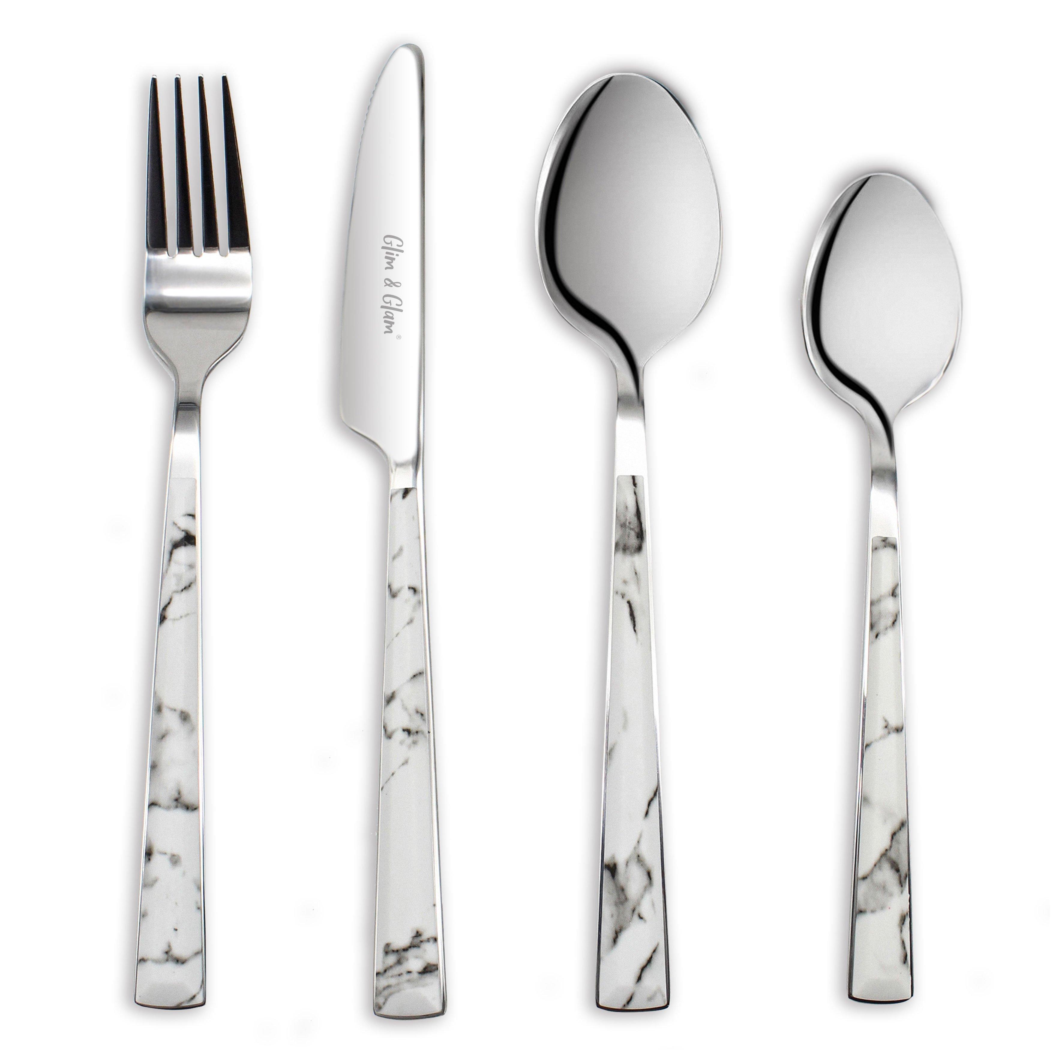 Cutlery Sets Knife Fork Spoon 16 Piece Set Marble Decal Handle