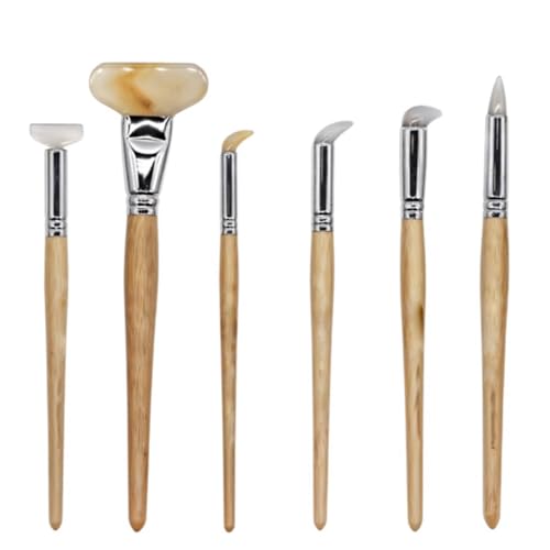 6 Pcs Agate Polishing Pen, Pro Jewellery Burnisher Knife with Round Grinding Heads, Angled, Bamboo Handle, Flat, Gold Silver Platinum Surfacedri Tool for Carving Precious Metal