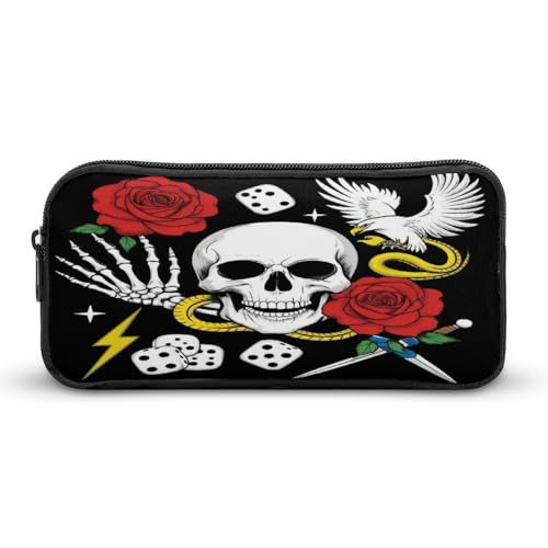 SMAZDFXX Adult Pen Case, Large Capacity Vintage Rock Snake Knife Wild Eagle Rose Skull Pencil Pouch, Aesthetic Zipper Pencil Box for Travel Essentials