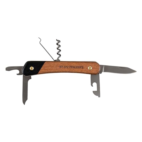 Gentlemen's Hardware 7-in-1 Multi-Tool Mini Titanium Coated Steel Pen Knife Pocket Tool, Wood Handle